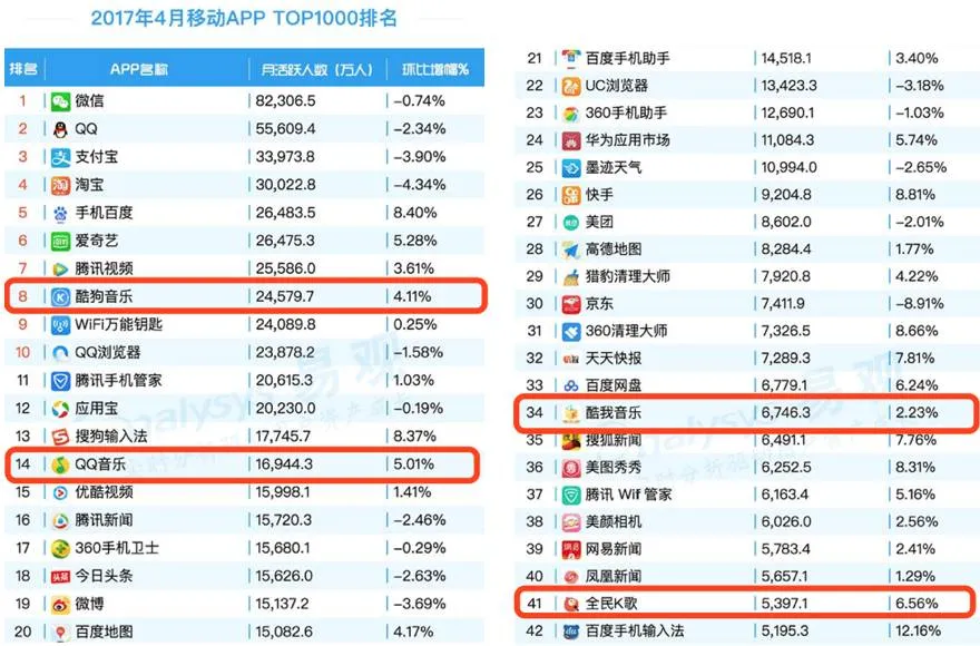(易观千帆《2017年4月移动APP TOP1000排名》)