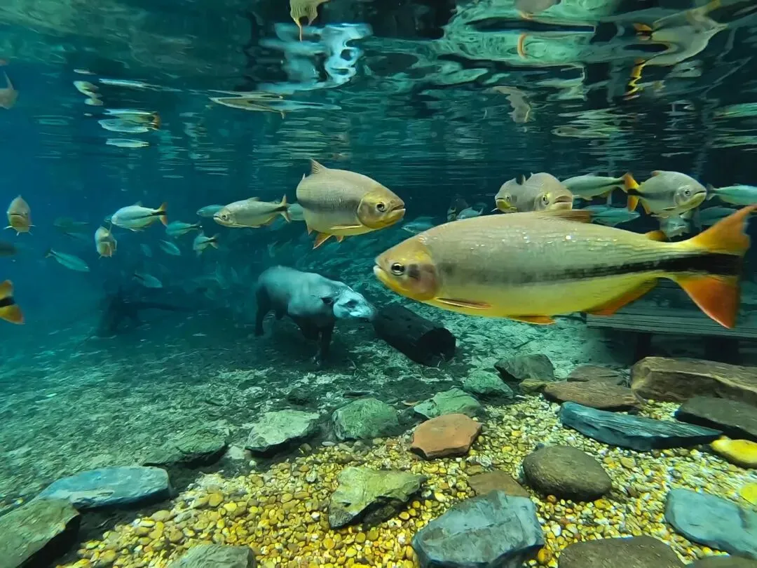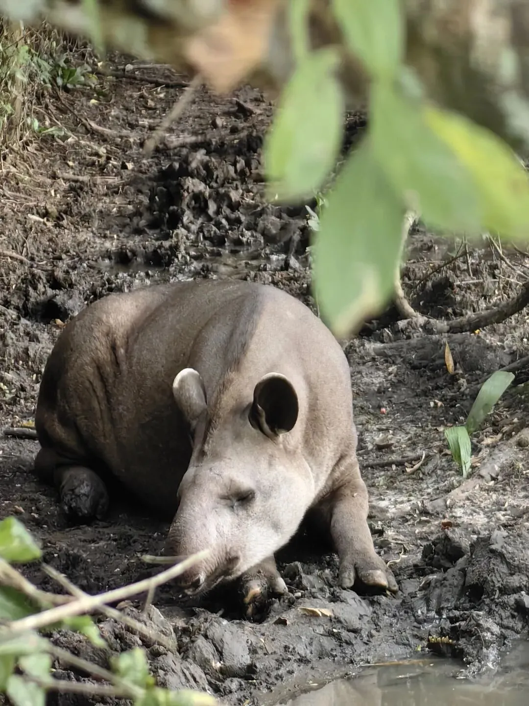 原来巴西貘是游泳健将!能潜水、过河、长时间待在水里!我天,岸上懒得动弹睁不大开的迷离双眼,到了水下瞪得溜圆!