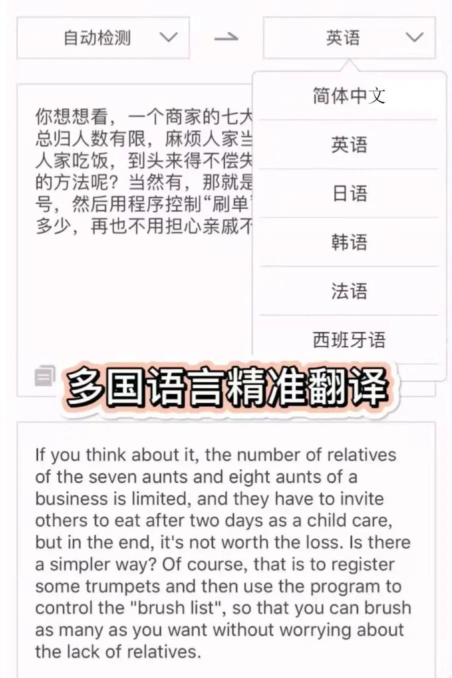 支持简体中文、日语、英语、韩语、法语等多种语言的互译呀~