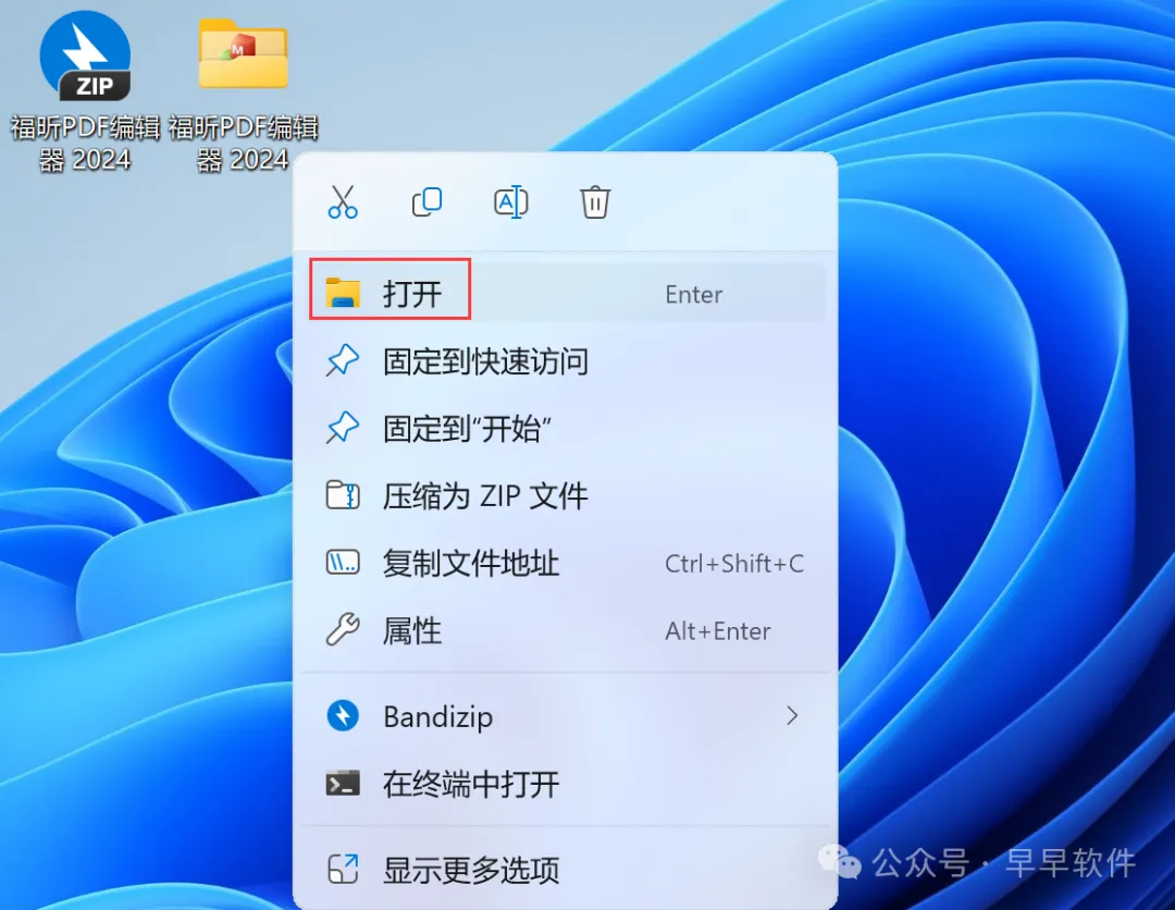 14、回到桌面,右键桌面上的【福昕高级PDF编辑器软件图标】,点击【打开】