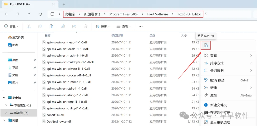 10、右键文件夹的空白处,点击【粘贴按钮】