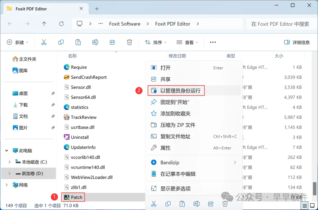 11、找到粘贴的【Patch】应用程序,右键选择【以管理员身份运行】它