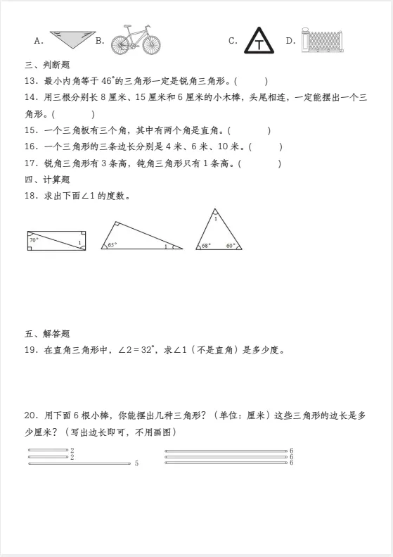 四年级(下)数学 三角形专项训练/电子版可下载
