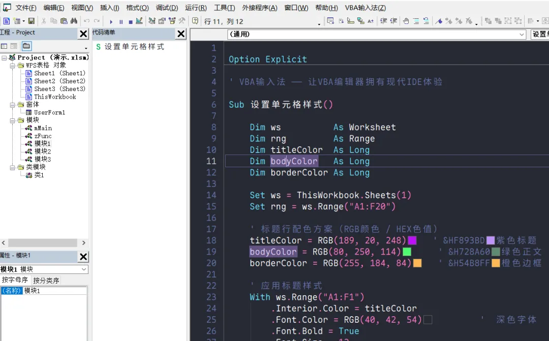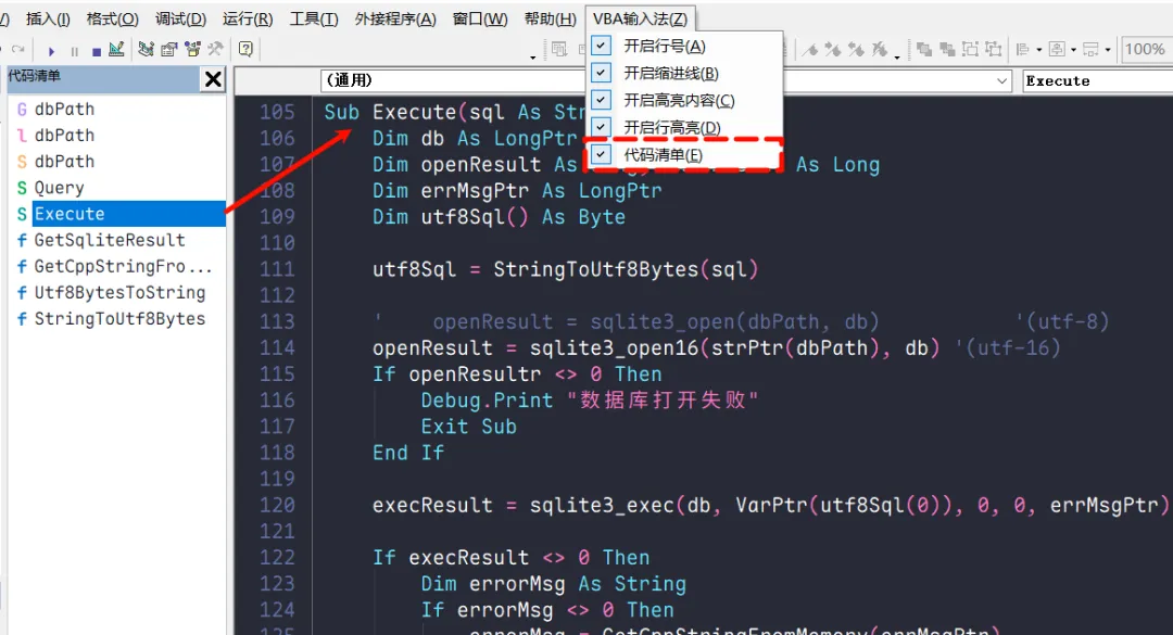 VBA编辑器现代化:增加调试,代码清单功能