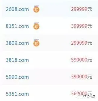 四数字的.com域名,2012年的价格在1万内,目前的价格是30万~100万左右,平均每年涨8倍左右。