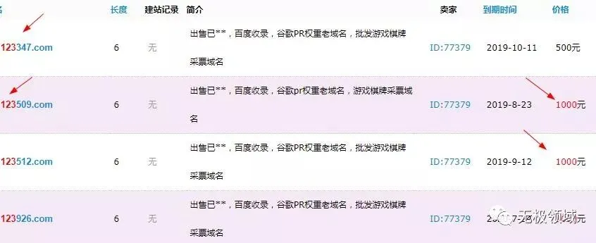 先浏览各大域名的报价,如AAA的豹子号、123开头、800开头、315/110等特殊意义的数字、ABCABC的回旋数字… 观察米农们的定价,寻找规律。