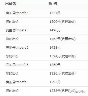这是我和某米农的竞价情况,从400元涨到现在的1534元,预计最终价格在5位数。