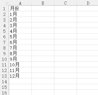 注意:这一列的最上面的单元格(如A1)需要输入一个标题,比如“月份”或任意文字,不能留空。