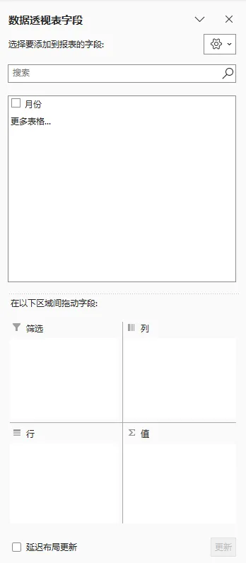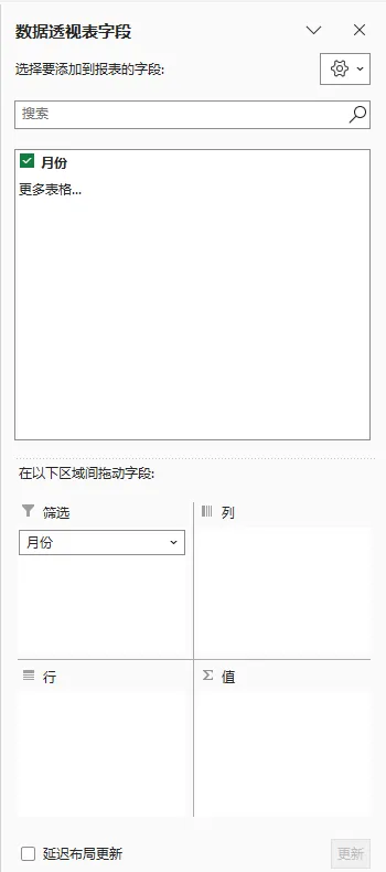 Step3.将数据透视表字段中【月份】拖拽到【筛选】。
