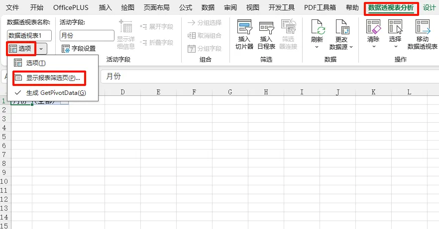 Step4.点击蓝色的数据透视表,【数据透视表分析】-【选项】-【显示报表筛选页】-【确定】。