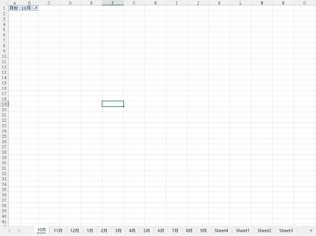 但是结果显示工作表的顺序是“10月、11月、12月、1月、2月…”,并不是按照数值大小排序。这是因为Excel在处理包含数字的文本时,数字排在汉字前面。
