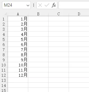 Step1.新建工作簿,输入想要生成的工作表名称,如想要生成一年12个月的工作表,在A列单元格内分别输入1月-12月。