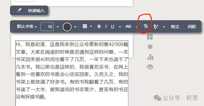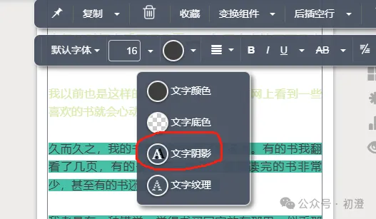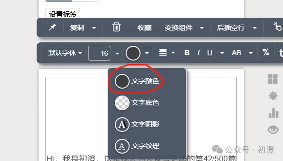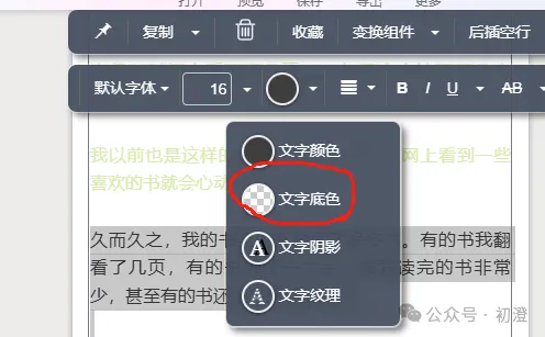 点击文章,会出现两条工具条;第二条是文字工具条。