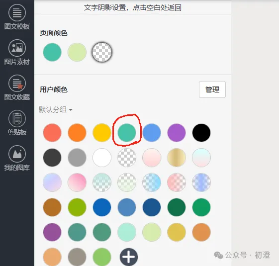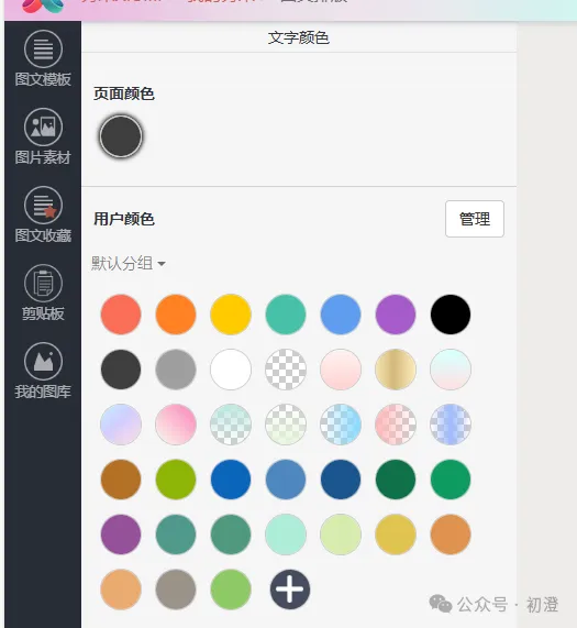 主要是调整被选中文字的颜色,调色板分纯色调色板、渐变色调色板。