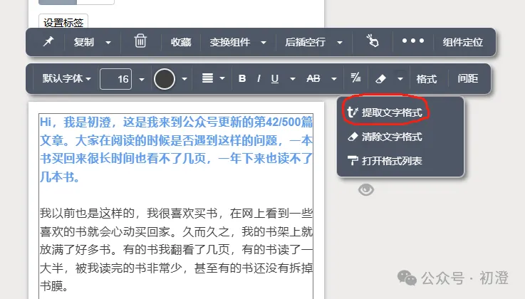 文字格式刷,其实是分两个操作,一是提取格式,二是给文字刷上格式。