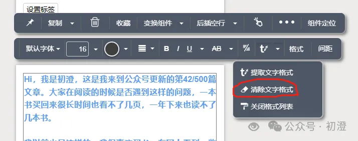 第二条即文字工具条:下面接着给大家介绍秀米编辑器里文字的排版,以我之前的一篇公众号文章为例。我复制一部分到秀米编辑器中,如图: