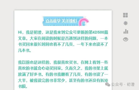 大家好,我是初澄,一个80后全职宝妈。每天带娃间隙读书写作,重启人生。
