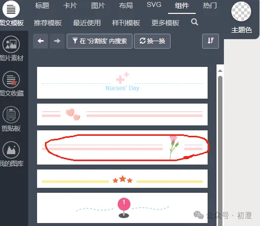 点击组件里的分隔符,选择添加进文章,如下图
