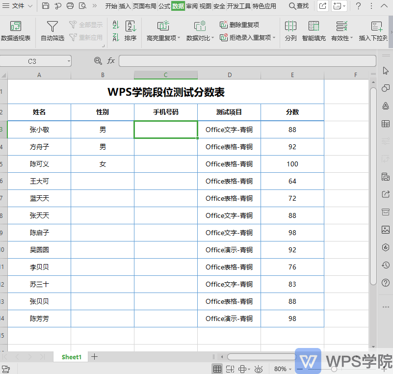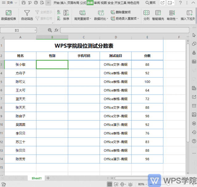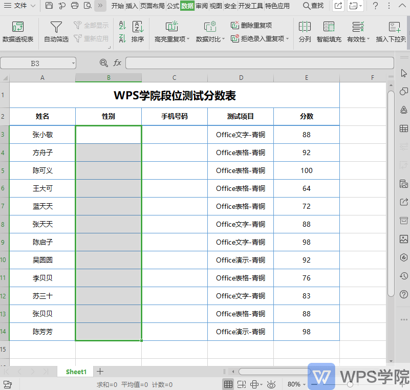■ 例如我们要在这一列中输入性别的数据。