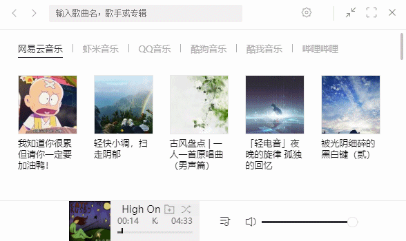 搜索的时候也是,可以分别在网易云、QQ 音乐的资源里搜索资源( 双击切换 )。