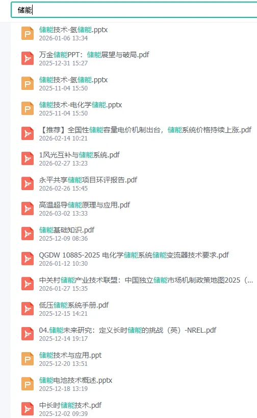 储能技术知识大全(137页).pdf 今日干货分享来啦!为大家带来一份完整PDF学习资料【储能技术知识大全(137页).pdf】137页中部分截图,并附上检索目录,需要的小伙伴文末扫码可下载获取。 扫码可下载3万本资料 检索目录如下: