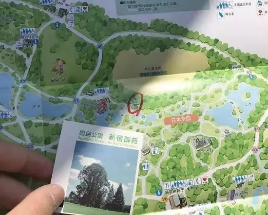 还厚颜无耻的在拉着新宿御苑门口的小姐姐问个没完,上道的小姐姐直接帮 KK 在地图上圈了出来。