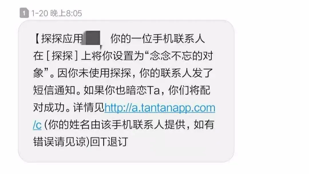 因为西西手机之前收到过探探的短信,大致意思就是:有人在暗恋你,而你需要下载软件才能看是谁。