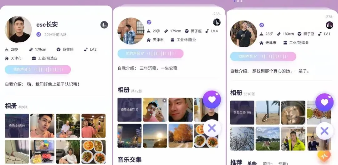 每天会推荐和你音乐口味相似的盆友,并且是同城优先。极大拓展了爱好音乐人群的交友渠道。