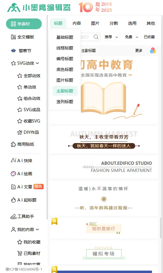 AI一键排版,25万+素材库,海量免费功能 |