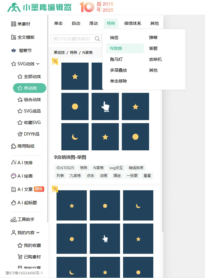 Q2:如果我要加入公众号svg动画,要额外学习代码吗?A2:完全不需要!小墨鹰编辑器提供的3000+ SVG动效,操作极其简单,只需替换文字、图片即可,无需任何技术背景。