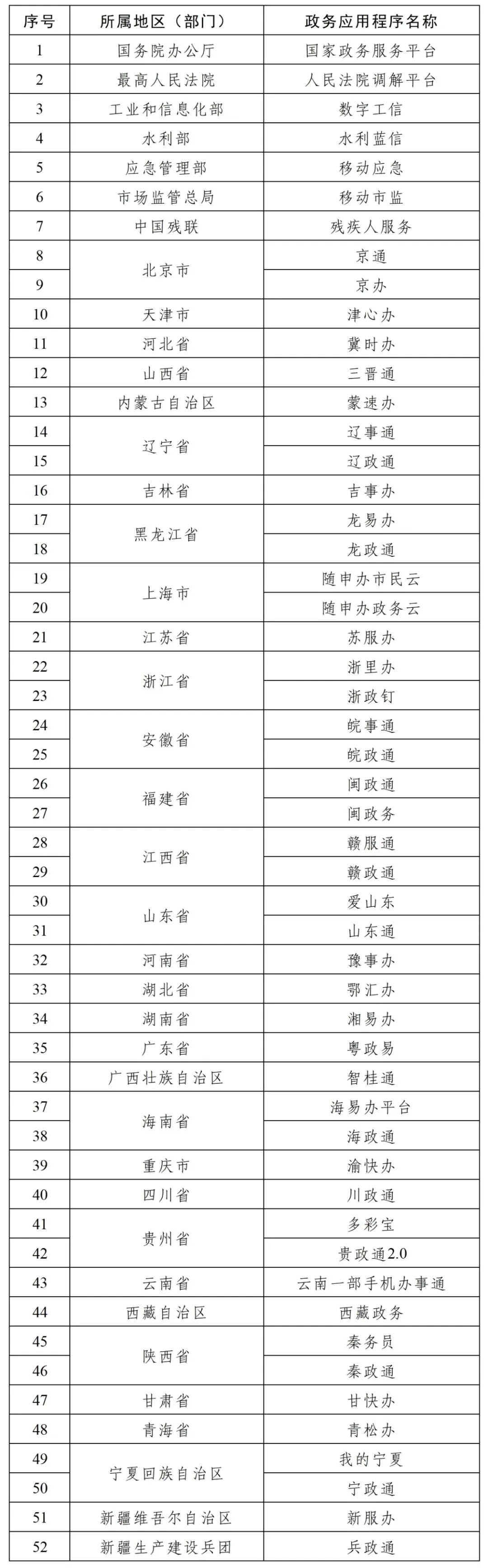 首批52款政务应用程序完成备案
