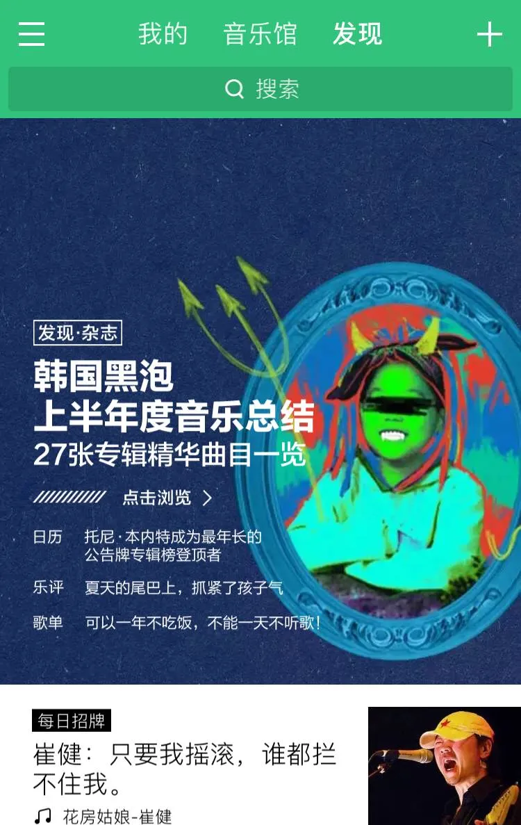 进入QQ音乐APP首页的“发现”栏目,你会看到各种音乐相关的专栏分享,里面收录有歌单推荐、音乐人故事、深度解析等,与音乐相关的一切。