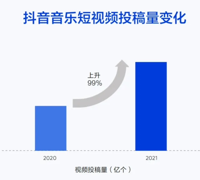 以抖音为例,其不久前发布的2021年短视频音乐大数据报告显示,平台全年音乐创作视频的投稿量累计超184亿个,同比增加99%,音乐短视频日均创作量逾5000万个;音乐人生态方面,2021年抖音平台新增音乐人数量环比增长92%。其中,30岁以下的新生代音乐人占比近七成。