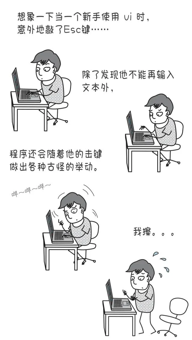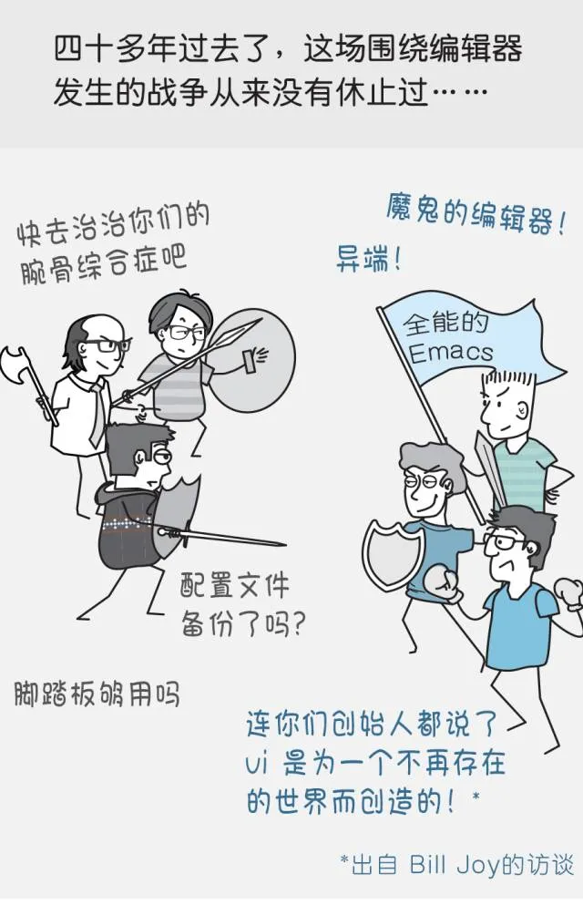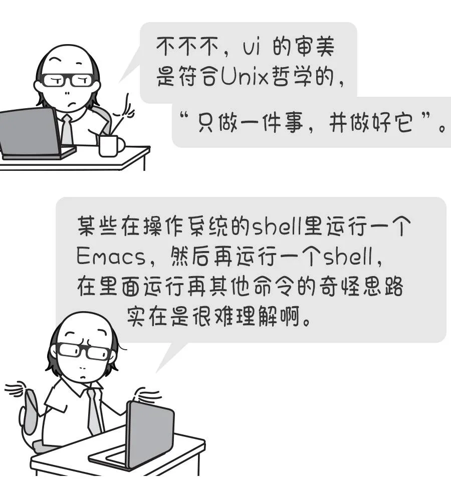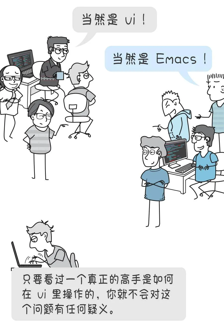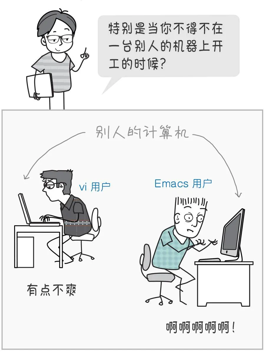 * Tim O’Reilly 1999年在 《ask Tim》 栏目里写到:“But then one day, I discovered that someone had blown away the custom emacs profile that I had gotten comfortable with. It took about a week for me to get it restored, and in the meantime, I switched to vi, and got hooked.” 😂 😂 😂