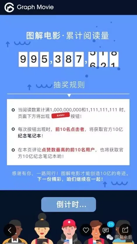 图解电影APP十亿阅读量感恩大回馈! 「图解电影」带你换种姿势与电影发生关系的公众号 感谢有你,一路同行!图解电影才能创造10亿的奇迹。 现在打开图解电影APP,参与#十亿阅读量倒计时#活动: 即有机会获得官方特别定制的10亿纪念笔记本! 快来戳阅读原文参与吧~