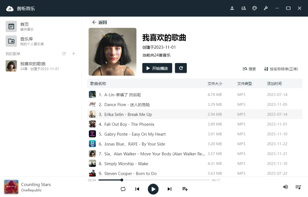 看到这里估计很多小伙伴就知道了,普听音乐实际上就是一个可以播放阿里云盘内音乐文件的音乐APP