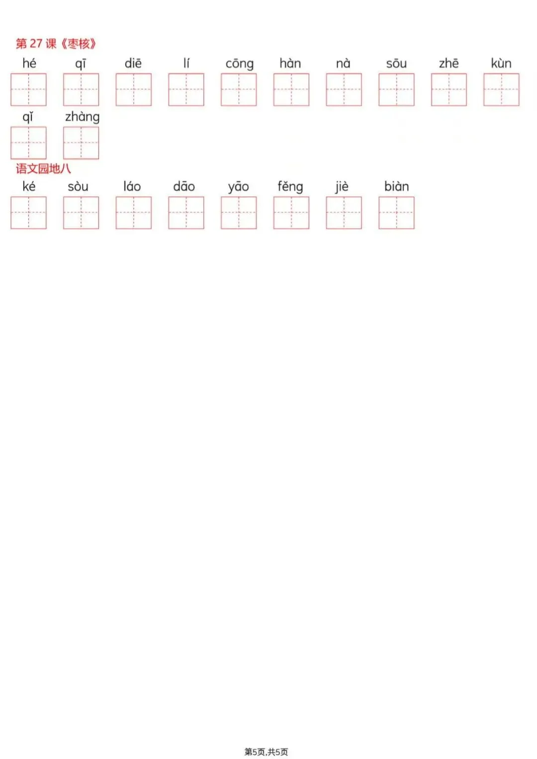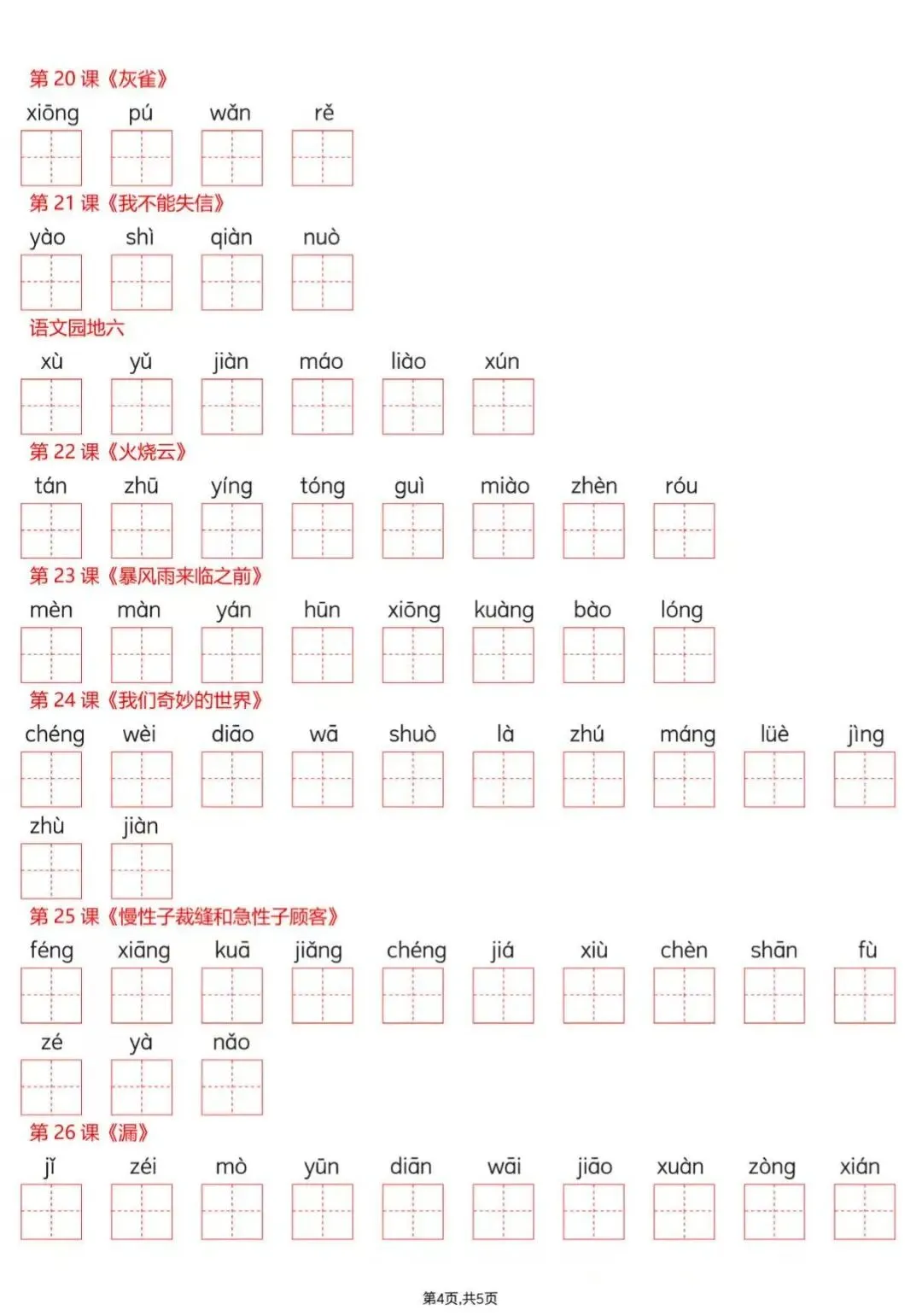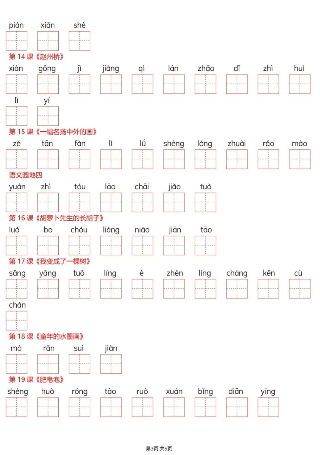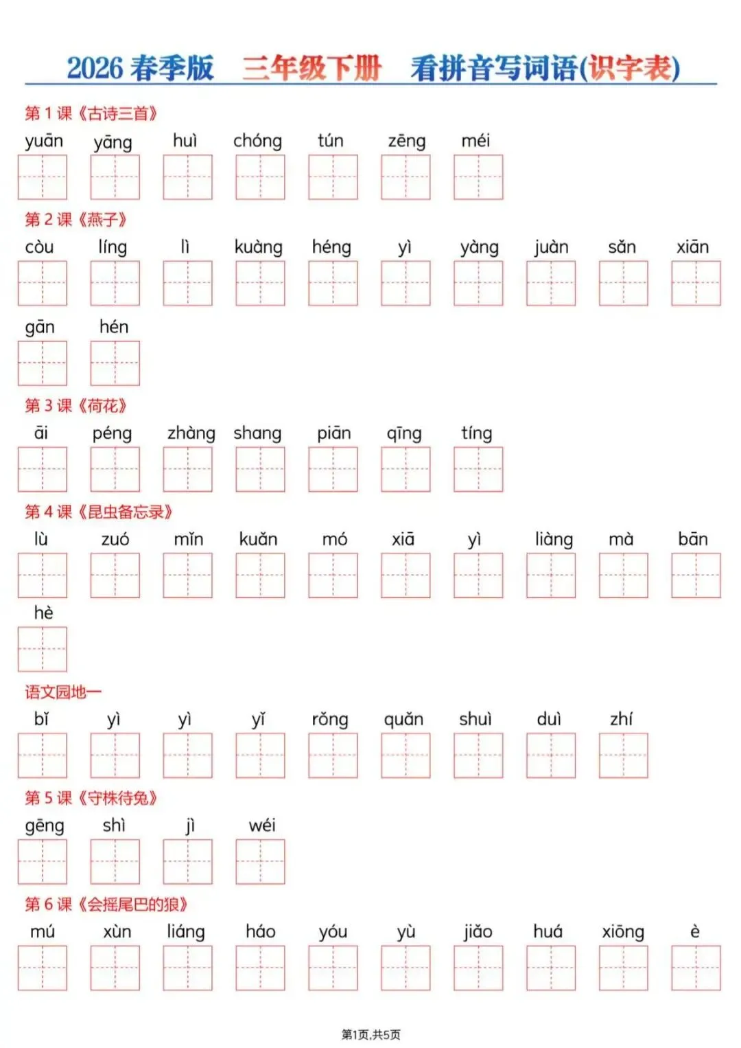 三年级下册语文(看拼音写词语),电子版可打印