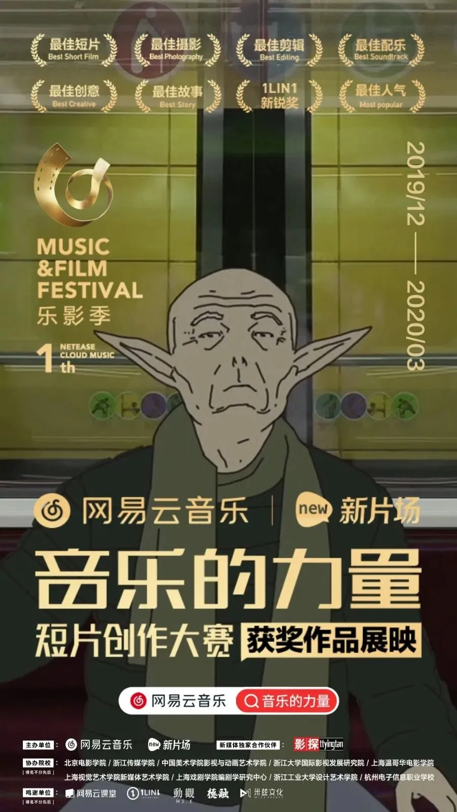 历时3个月时间,由网易云音乐×新片场发起的乐影季“音乐的力量”短片创作大赛共征集到作品600多部,最终决定出最佳短片、最佳故事、最佳创意等7大奖项,以及通过网易云音乐站内投票决出3部最佳人气奖。