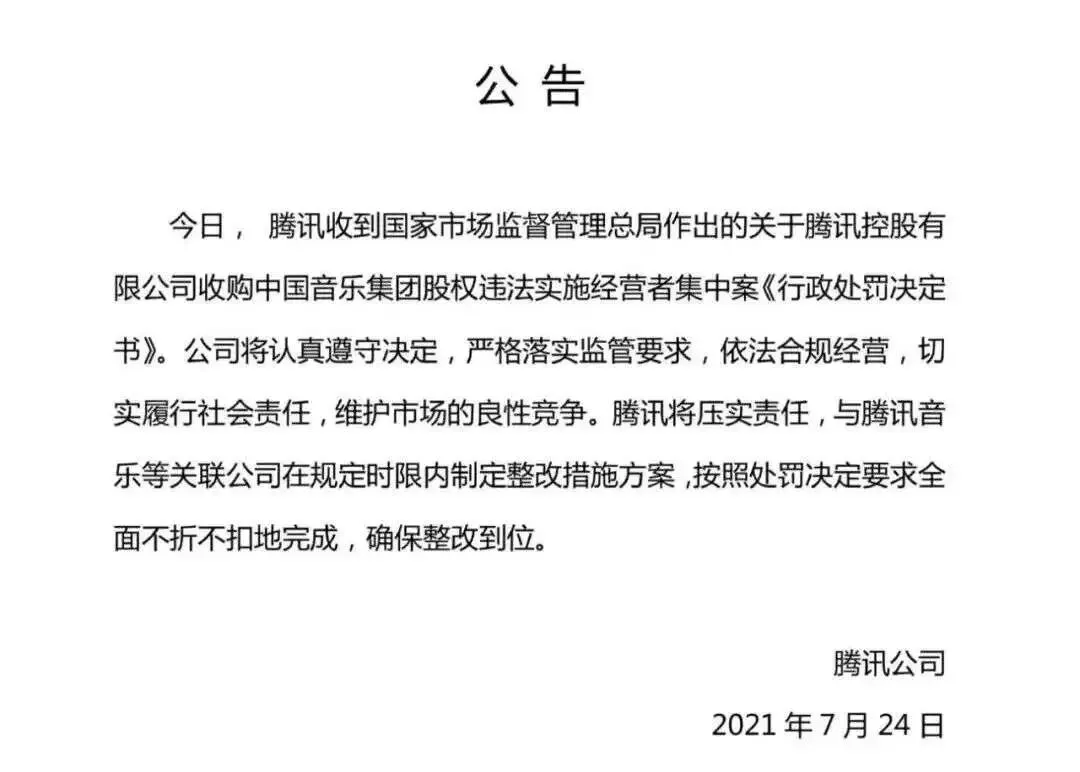 周杰伦的歌将登陆各大音乐平台!切换App听歌的日子终于要结束了! 7月24日,很多歌迷开始欢呼, 左右横跳、切换App听歌的日子终于要结束了。 国家市场监督管理总局的一纸行政处罚决定书, “打破”了腾讯音乐一家独大的格局。 腾讯被责令解除网络音乐独家版权。 腾讯公告如下: 你用过最满意的音乐app是? ↓↓↓