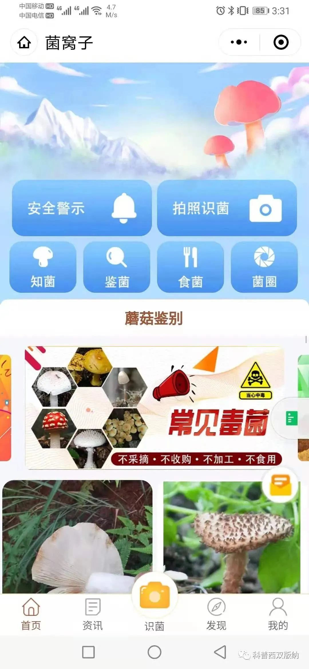 近日,中华全国供销合作总社昆明食用菌研究所与某科技企业共同开发的“云南大型真菌(蘑菇)数字化应用移动服务系统”,即“菌窝子App”,在应用市场和微信小程序上线运行。这是全国第一款通过手机拍照就能辨识野生菌品种的应用软件。