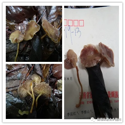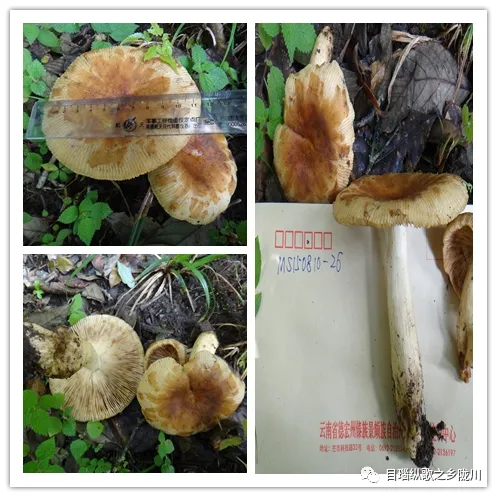 8、黄褐口蘑:菌盖棕红色;菌褶白色束状;菌柄白色,质地疏松,触碰不变色。