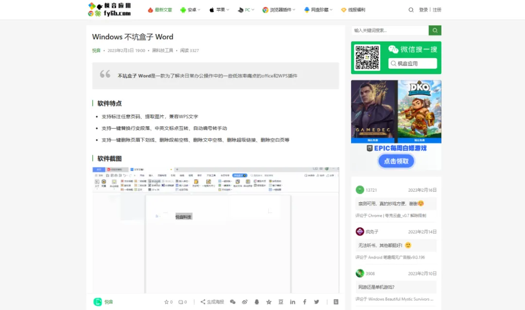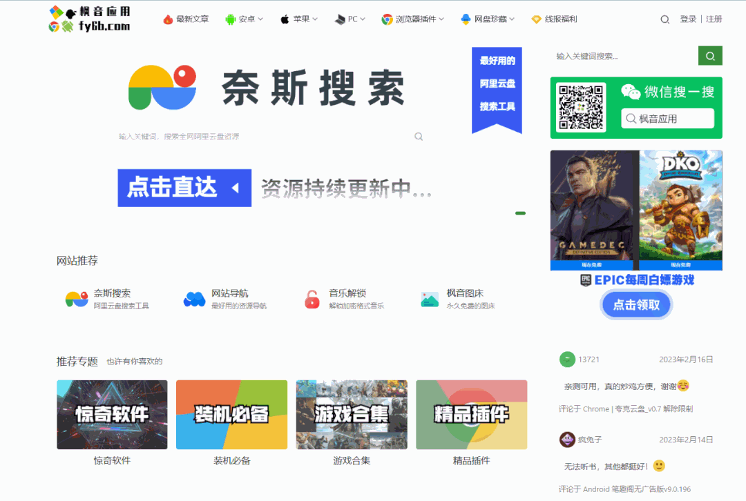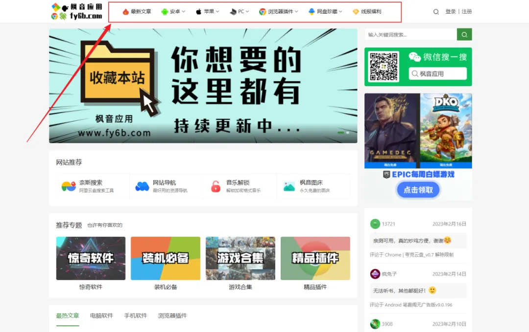 打开网站,最上方提供几个“索引栏”,分别是:最新文章、安卓、苹果、PC、浏览器插件、网盘珍藏、线报福利。