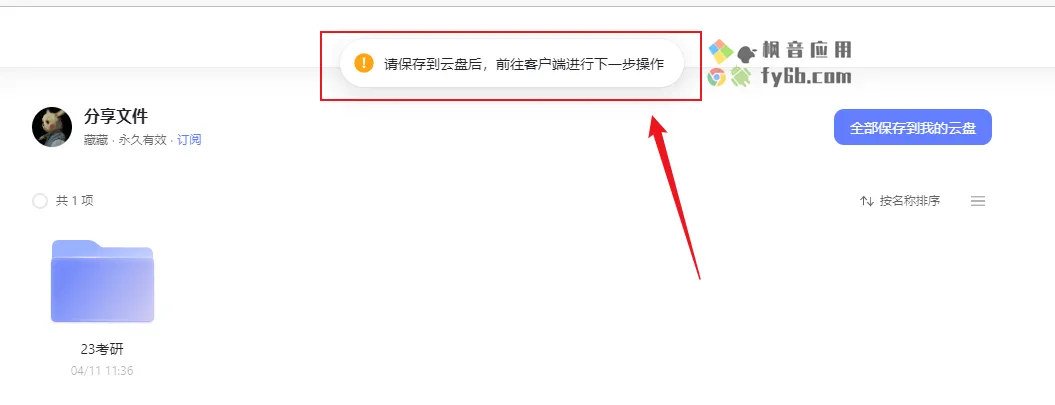 美中不足的是转存后,需要下载客户端才能够下载文件。