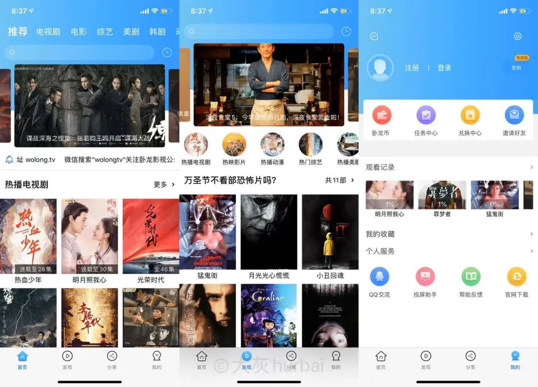 卧龙影视同时支持 iOS 版、Android 版和 iPad 版(iPad不能横屏),界面简洁舒服,支持投屏,目前没有广告,资源多,无须登录即可观看,非常不错的一个看片神器。