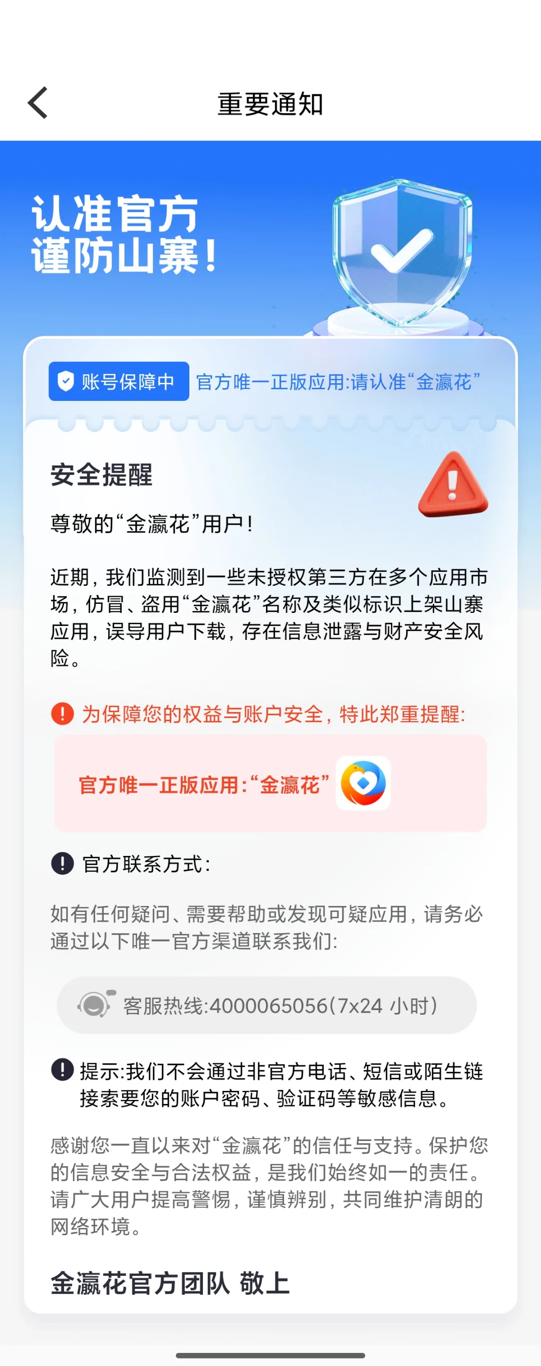 通知,金瀛花,金瀛借款最新苹果和安卓App下载教程,认准官方App,请不要点击未知链接!