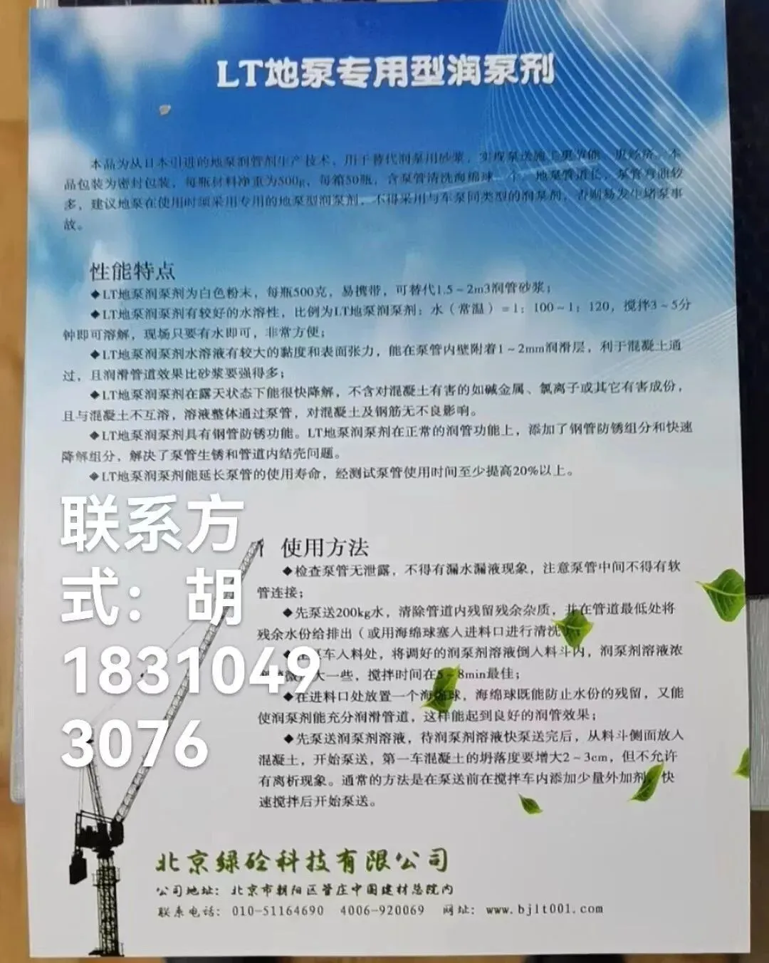 润泵剂联系电话:胡景平18310493076(微信同号)