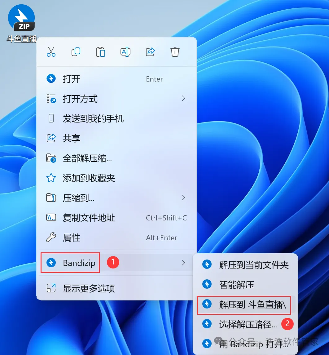 1、下载斗鱼直播软件安装包到电脑上,右键选择【解压到斗鱼直播\】