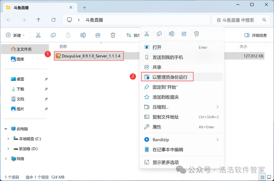 3、找到【斗鱼直播】应用程序,右键选择【以管理员身份运行】它