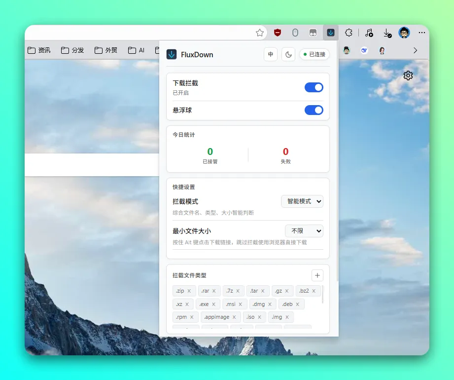 据介绍「FluxDown」支持 HTTP/FTP/BitTorrent 磁力链接及 HLS/DASH 流媒体,提供智能多线程加速,以及浏览器扩展插件(Chrome / Firefox)与浏览器无缝集成。