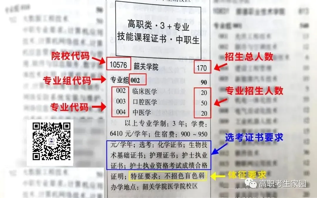 1、院校代码、2、院校中文名称 3、专业组代码  4、招生总人数、5、专业招生人数、6、专业代码、7、选考证书要求  8、体征要求,全省院校招生计划都汇总在此书。